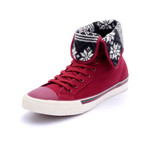 このモデル「Center Xtra HI (センター エクストラ HI)」は、1953年に発売された『CENTER』をアレンジしたモデルです。このモデル最大の特徴は履き口の折り返しデザイン。もちろん伸ばして履く事も出来る2WAYタイプ。ノルディック模様がオシャレな1足です。カカトのテープはPFの象徴的2重ラインです。ハイカットにした場合の高さは約20cm。ミッドカットにした場合の高さは約15cm。インソール構造まで細部にわたり日本人向けに修正を加えたモデルになっています。