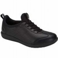 ひざへの負担軽減に着目した男性用ウォーキングシューズです。クッション性に優れた中敷と、DUOMAX構造のミッドソール採用で、ひざへのクッション性に優れています。靴ひもは結ぶタイプではなくゴムです。履き口に伸びる素材を配したモノソック構造で、靴下のようにそのまま脱ぎ履き可能で、しっかり足をホールドします。靴の構造上、履き口は通常の紐靴と比べると大きく開きづらいですが、履いた際非常にフィット性のある靴です。ワイドウィズ(3E相当)で、室内履きにもご使用いただけます。 アッパー:人工皮革 アウターソール:ゴム底(ノンマーキング) 幅:3E相当